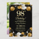 Convite Elegant Black Gold Glitter 98th Birthday Photo
