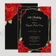 Convite Elegant Black Gold Red Roses 18th Birthday Debut