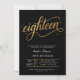 Convite Elegant Black & Gold Script Eighteen 18th Birthday