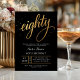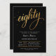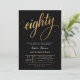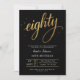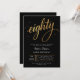 Convite Elegant Black & Gold Script Eighty 80th Birthday