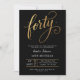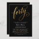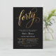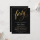 Convite Elegant Black & Gold Script Forty 40th Birthday
