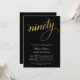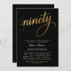 Convite Elegant Black & Gold Script Ninety 90th Birthday