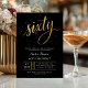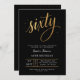 Convite Elegant Black & Gold Script Sixty 60th Birthday