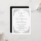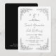 Rounded Black outline Floral and Black Text black and white background wedding invitation. Wedding website on the back. Black and white wedding.