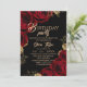 Modern stylish birthday party invitation burgundy with gold dust on with a gold ink pour effect (the gold is a digital effect, not real foil!) and modern calligraphy. Classy and elegant, simple and modern invitation.