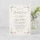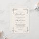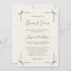 Elegant Black Script Simple Coquette Bow Wedding Invitation features a soft neutral background framed with delicate hand-drawn bow illustrations in each corner, creating a romantic and timeless wedding aesthetic. The elegant script typography paired with refined serif text gives the design a classic, graceful feel while highlighting the sweet bow-inspired theme. The subtle line art details and balanced layout keep the invitation clean, minimalist, and sophisticated.
