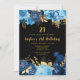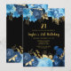 Convite Elegant Blue and Gold Flowers Birthday Party