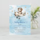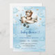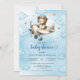 Convite Elegant Blue Brown Teddy Bear Pilot Baby Shower
