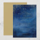 This elegant wedding invitation features a celestial theme with a rich, textured deep blue background adorned with golden speckles resembling a starry night sky. The layout is framed by a thin golden border, enhancing the sophisticated and modern aesthetic. A mix of script and serif fonts adds a touch of classic elegance, while the customizable text allows for personalization. Perfect for couples seeking to celebrate their union in style, this design exudes warmth and celebration, making it ideal for formal gatherings.