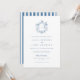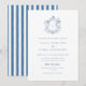 Convite Elegant Blue Floral Crest Striped Back Wedding