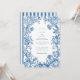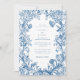 Convite Elegant Blue Floral Crest Striped Back Wedding