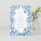 Elegant Blue Floral Crest Wedding Invitation with Striped Back