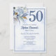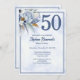 Convite Elegant Blue Florals Women's 50th Birthday Party