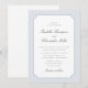This refined wedding invitation features a soft blue ornamental frame that gently surrounds the wording, creating a graceful and timeless presentation. The delicate border gives the design structure and elegance while keeping the overall look clean, airy, and sophisticated — a style many women choose for classic, romantic celebrations.