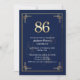 Convite Elegant Blue Gold 86th Birthday Party