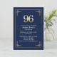 An elegant modern design featuring a gold 96 number with gold edges and frame and a low-key number in the background. Customize the details for a unique and chic Birthday Celebration.