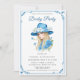 Celebrate your special event with this elegant blue hat garden party invitation,