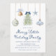 Convite Elegant Blue Ornaments Merry Little Holiday Party