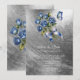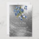 Convite Elegant Blue Roses Butterfly Silver Wedding Shower