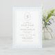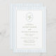 Elegant Blue & Sage Striped Wedding Invitation with an oval monogram crest