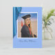 A unique card with an elegant blue, satin color scheme. Similar blue background on the back of the card containing details. Suitable for a high school or college graduation. The photo and all text are easily changed with the template. Selecting “Personalize this design” offers you several edit options to easily change the text (wording, plus type font, color, size, position) and to edit the design elements. You may also want to scroll down to the section “Transfer design to a product” for a few suggestions about other items this design can be used on.