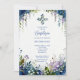 This delicate design features a floral frame in blue shades, arranged in an arch shape that adds an elegant and harmonious effect. Inspired by the tenderness and solemnity of a baptism, it combines softness and sophistication, evoking a serene and meaningful atmosphere. Its digital watercolor style highlights the beauty of each floral detail, creating a visually attractive and delicate composition.