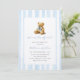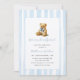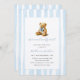 Convite Elegant Blue Stripes Teddy Bear Baby Shower
