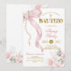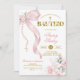 Convite Elegant Blush Pink Bow Coquette Rosary Baptis