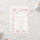 Celebrate a timeless and romantic baby shower with this elegant pink toile design, featuring delicate vintage countryside illustrations in soft blush tones. The refined arch layout creates a beautiful focal point for your event details, blending classic European charm with a modern, feminine aesthetic. Perfect for a chic, storybook-inspired celebration, this design feels both graceful and effortlessly sophisticated—ideal for creating a memorable and stylish gathering.