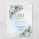 Convite Elegant Bohemian Dusty Blue White Floral 90th Bday