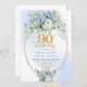 Convite Elegant Boho Blue Floral 90th Birthday Invitation