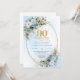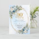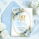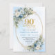 Convite Elegant Boho Dusty Blue Floral Gold 90th Birthday