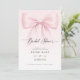 Gather friends and family to celebrate the bride with an invitation that feels gentle and elegant. The design includes a soft pink bow, graceful script, and a simple stripe on the back for a polished touch. Add your own details to make it a warm and memorable invite for a happy occasion.