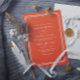 Convite Elegant Bright Orange Retro Unique QR Code Wedding
