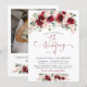 Convite Elegant Burgundy Blush Roses Photo Floral Wedding