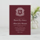 This elegant deep burgundy monogram wedding invitation features an ornate crest with interlocked fancy script calligraphy for the initials of the bride and groom and the names. Find matching products in the collection, or message me through Zazzle Chat for more products and design tweaks.