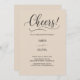 The eye-catching 'Cheers!' in elegant, flowing script immediately conveys a sense of joy and festivity, setting an upbeat tone for your special day. This beautiful typography is perfectly complemented by a clean, modern sans-serif font for all your essential details, ensuring clear readability for your guests. The soft, warm beige background provides a classic and versatile canvas, enhancing the overall feeling of refined warmth.