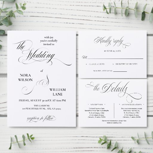Convite Elegant Classic Calligraphy Wedding Invitation