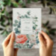 Convite Elegant Coral Peony Eucalyptus Watercolor