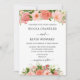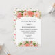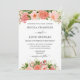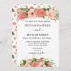 Celebrate your special day with this beautifully designed wedding invitation featuring soft coral pink roses, delicate cherry blossoms and lush greenery. The symmetrical floral arrangements at the top and bottom frame your wedding details with timeless elegance. Perfect for garden or rustic barn weddings, this design blends romantic florals with classic typography for a refined and inviting look.