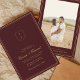 Convite Elegant Crest Monogram Burgundy & Gold Wedding