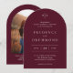 Classic style arch wedding invitation featuring a simple yet elegant design in a deep burgundy color that is perfect for a fall wedding or a winter / Christmas wedding. Use the template to add a photo or remove it in the design editing tool.