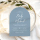 Convite Elegant Dusty Blue Arch Calligraphy Script Wedding