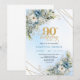 Convite Elegant Dusty Blue Botanical 90th Birthday Invite
