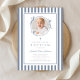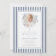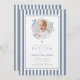 Convite Elegant Dusty Blue Bow Photo Boy Baptism