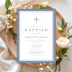 Elegant Dusty Blue Cross Boy Baptism Invitation.