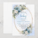 Convite Elegant Dusty Blue Flowers Gold Baby Shower Invite