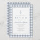 Convite Elegant Dusty Blue Gingham Boy Baptism