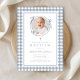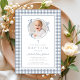 Convite Elegant Dusty Blue Gingham Photo Girl Baptism