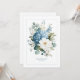 Invite your guests with breathtaking elegance using this sophisticated floral wedding invitation. The design showcases a stunning, painterly watercolor bouquet arranged beautifully against a clean white background. A magnificent dusty blue hydrangea cluster provides a lush focal point, perfectly complemented by a crisp, elegant white anemone or peony with a detailed golden-brown center. This exquisite arrangement is artfully interwoven with smaller delicate blue flowers, sprigs of dusty blue-green eucalyptus leaves, and subtle botanical accents, creating a fresh, romantic, and sophisticated feel. A minimalist, very thin blue border provides a clean frame for your event details. Perfect for sophisticated weddings (especially with a 'something blue' theme), this design is also ideal for elegant bridal showers, milestone birthday celebrations, anniversary parties, baby showers, or upscale garden events. This versatile design can also be adapted for sophisticated corporate galas, charity fundraisers, or elegant announcements requiring a touch of refined floral beauty.